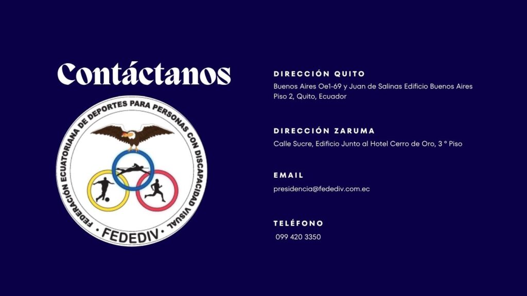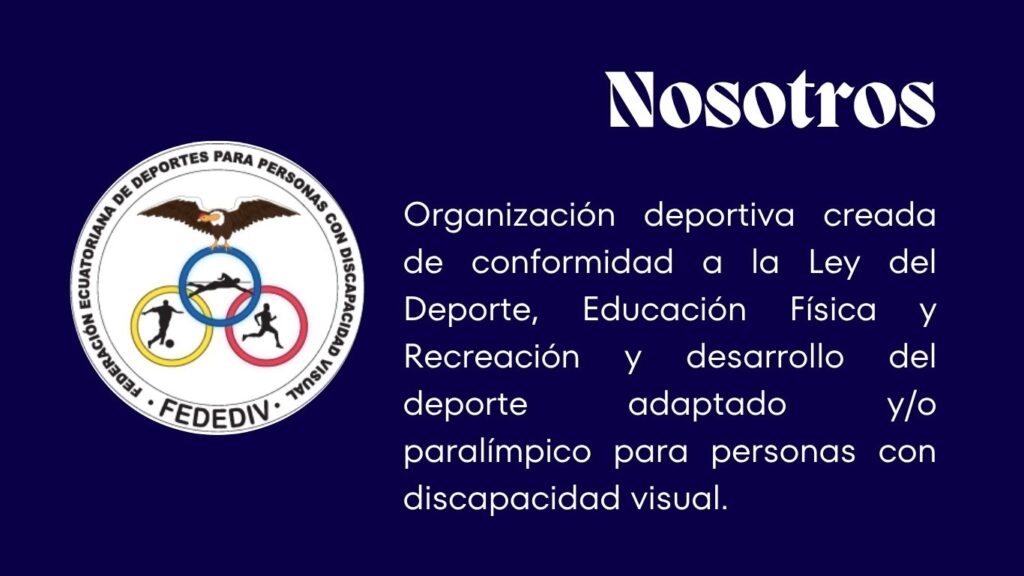 La Federación Ecuatoriana de Deportes para Personas con Discapacidad Visual (FEDEDIV) es una organización deportiva sin fines de lucro, creada de conformidad a la Ley del Deporte, Educación Física y Recreación, bajo Acuerdo Ministerial Nro. 0611 de fecha 14 de Mayo de 2012 para el desarrollo del deporte adaptado y/o paralímpico para personas con discapacidad visual.